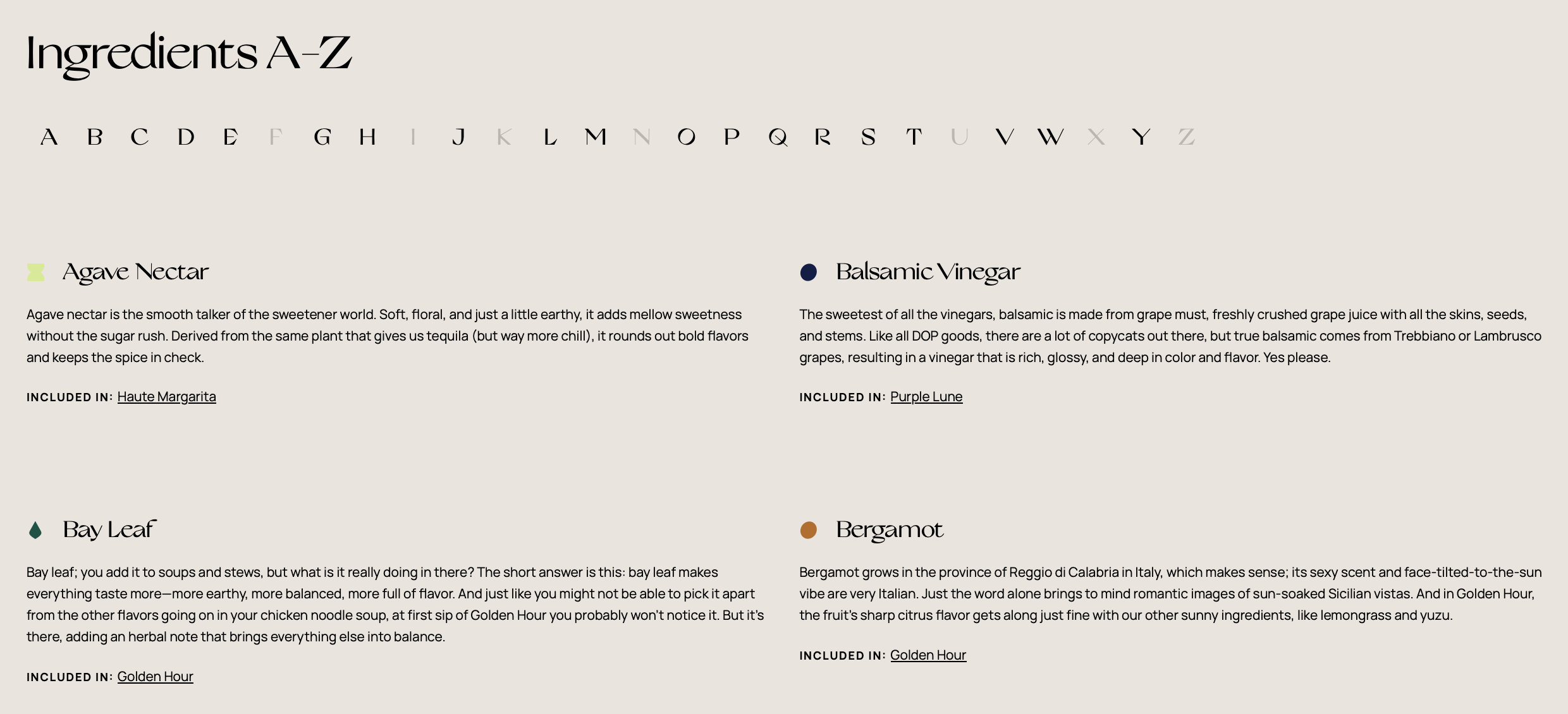 In an effort to educate consumers on the premium ingredients that went into the product, I created an extensive ingredient glossary.
